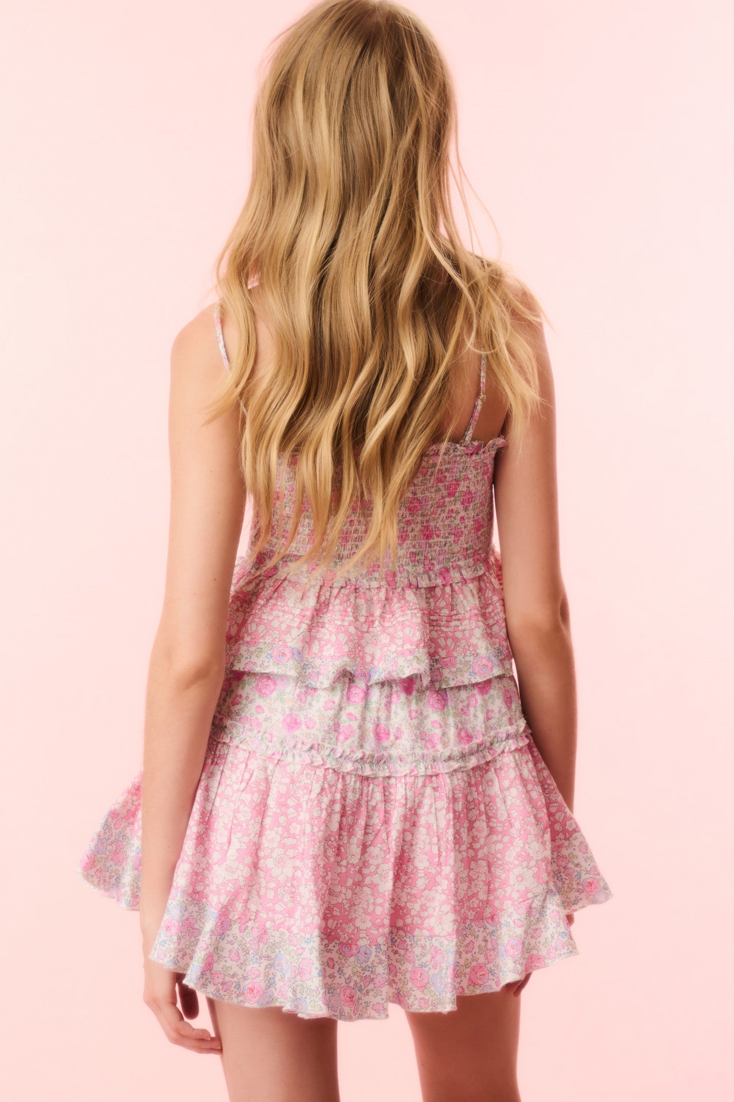 Introducing our latest capsule collection Made with Liberty Fabrics designed into our favorite elevated pieces. The Bardon Skirt returns in Liberty's Tana Lawn™ cotton fabric with a two-toned mixed floral print all over. Easy and dreamy, the mini features an elasticated waistband, top-applied ruffle details around the hip and slight hiking at the side seam for a flirty finish and silhouette.
