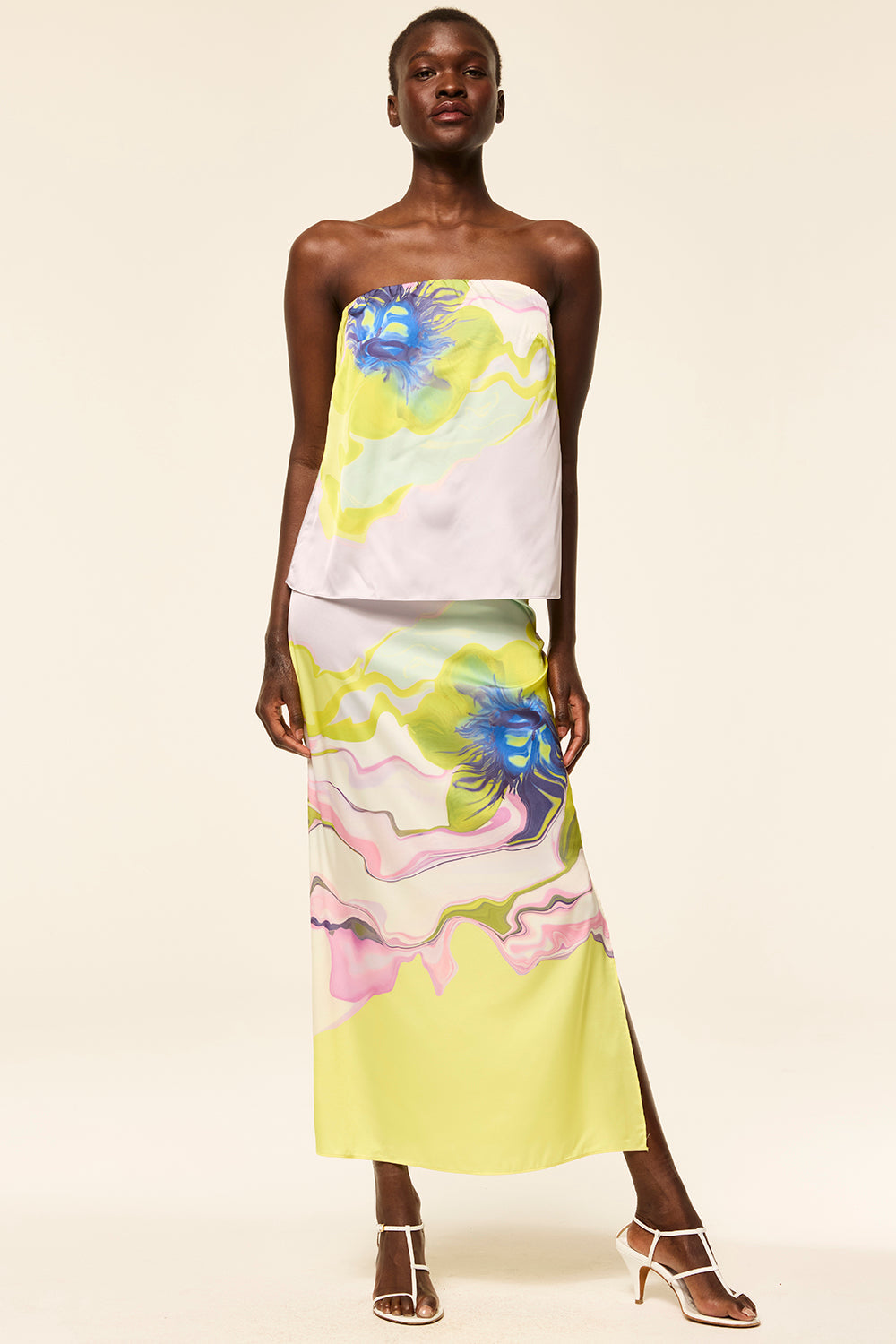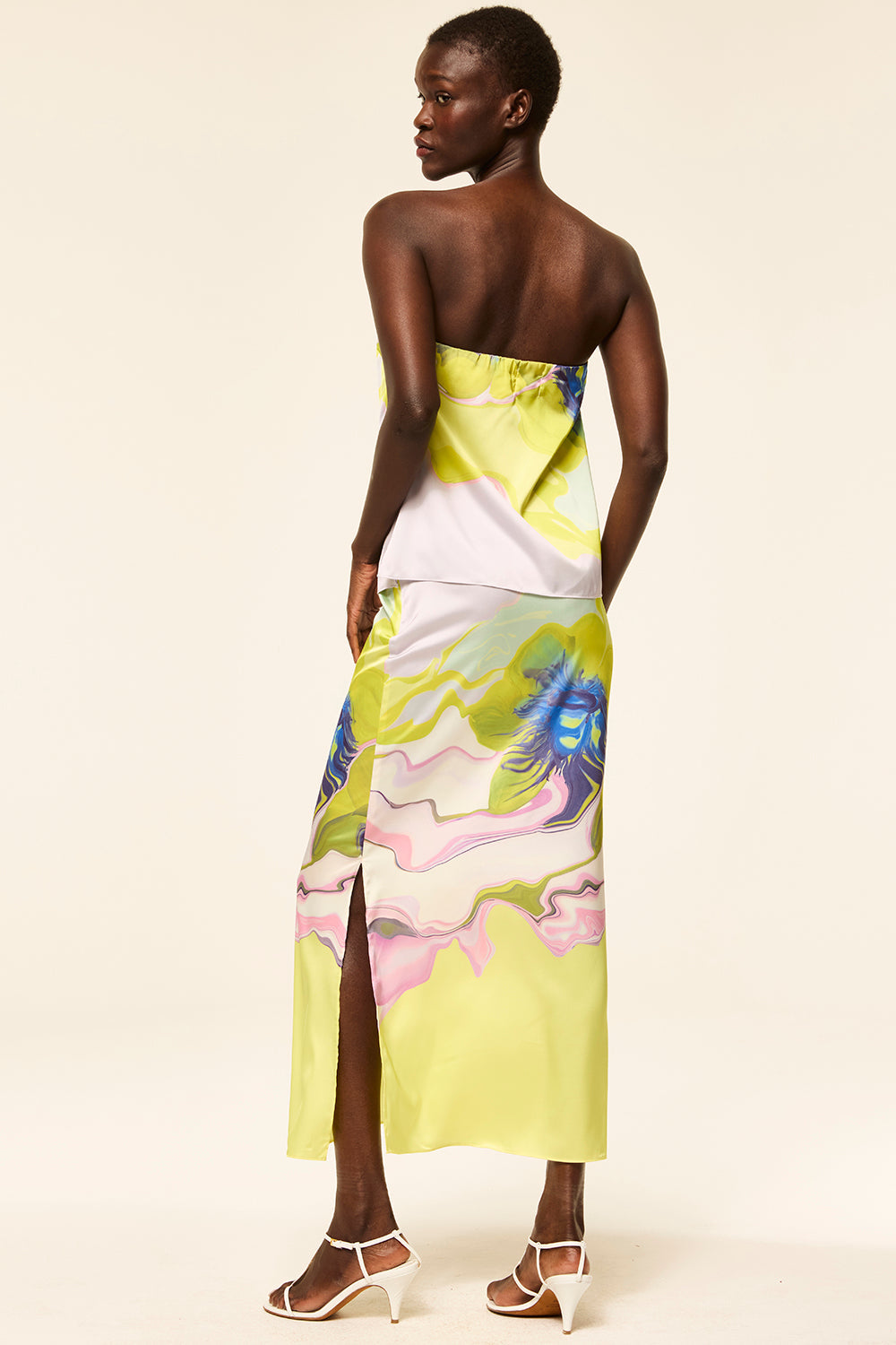 Charli is a chic slip skirt cut from our vibrant new Marble Flora print satin. This ankle-grazing style has a side slit that hits at the knee. Pair with the coordinating Lyka top for a head-turning spring set.