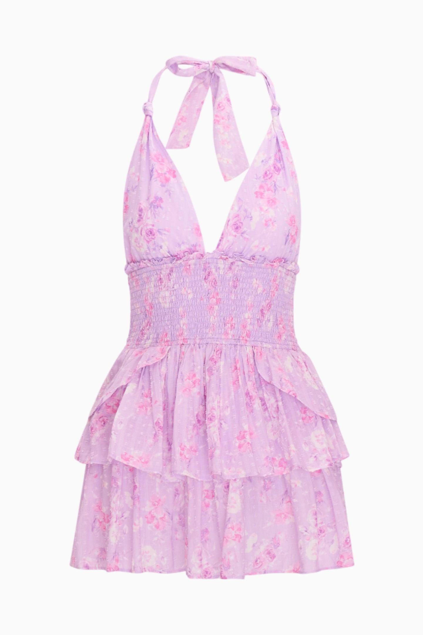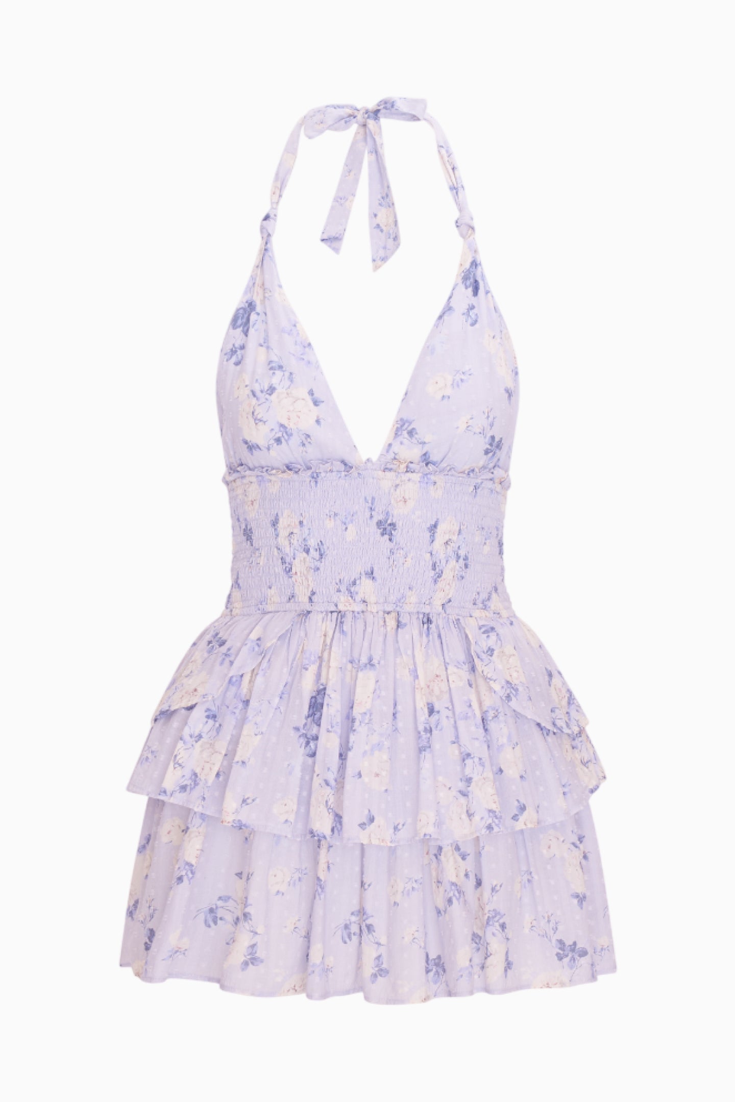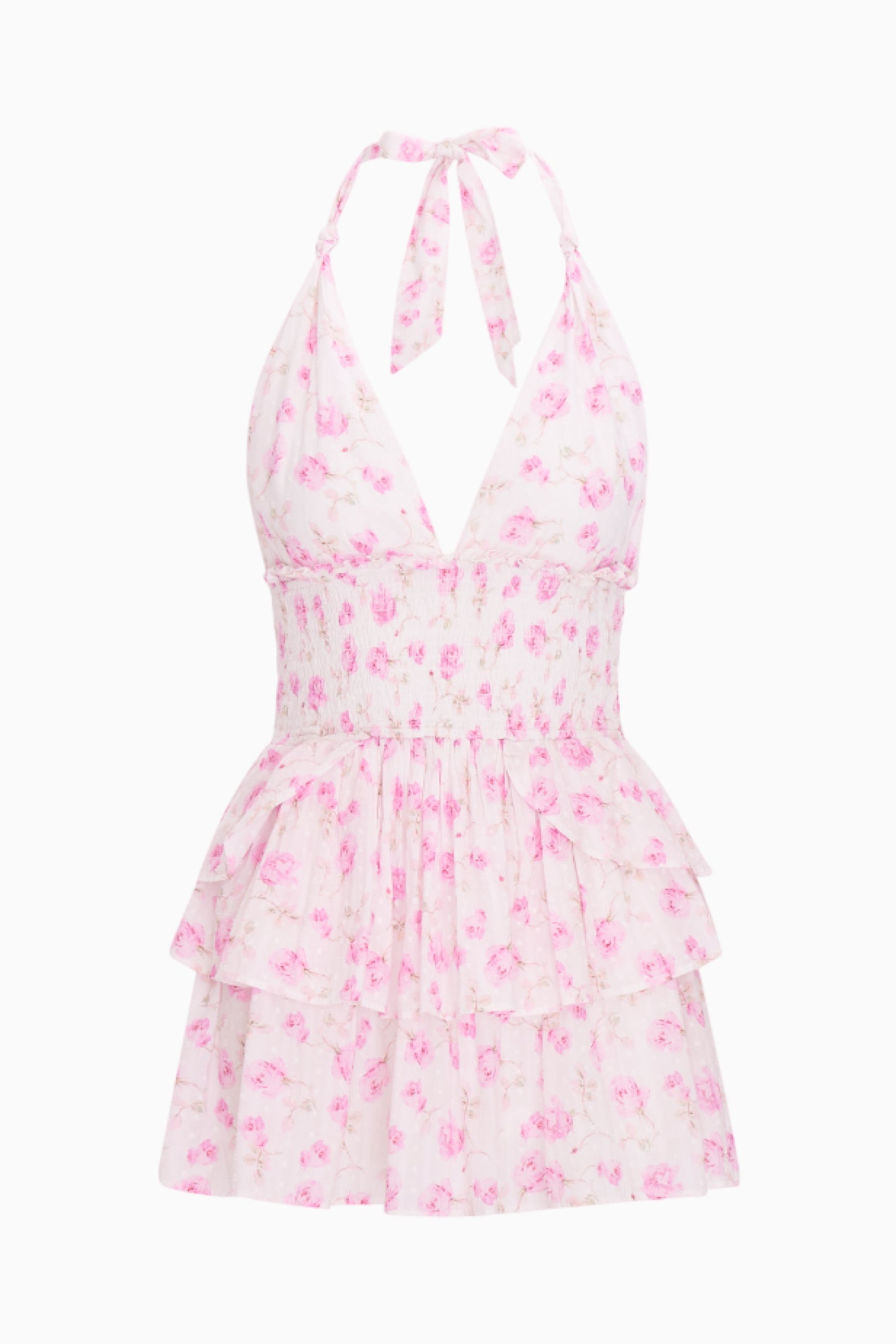 Everyone’s favorite Deanna Halter Dress is back as part of our Upcycled Icons Collection, a limited-edition, sustainable capsule featuring our best-selling silhouettes made from remnant LoveShackFancy fabrics. This low-cut convertible halter ties in a generous bow at the neck and can be crossed at front. Below a wide smocked waistband, the skirt flares to smaller details at the hips and two ruffled tiers.