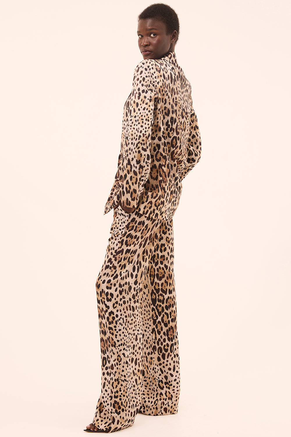 The Dionne Blazer is a timeless leopard satin statement piece you’ll reach for season after season. Designed with structured shoulders and long sleeves, it features a single-button front closure, deep V-neckline, and classic foldover collar. Double flap pockets complete the look. Style it with the matching Cher pant for a bold set, or pair with denim for an effortlessly chic, dressed-down vibe.