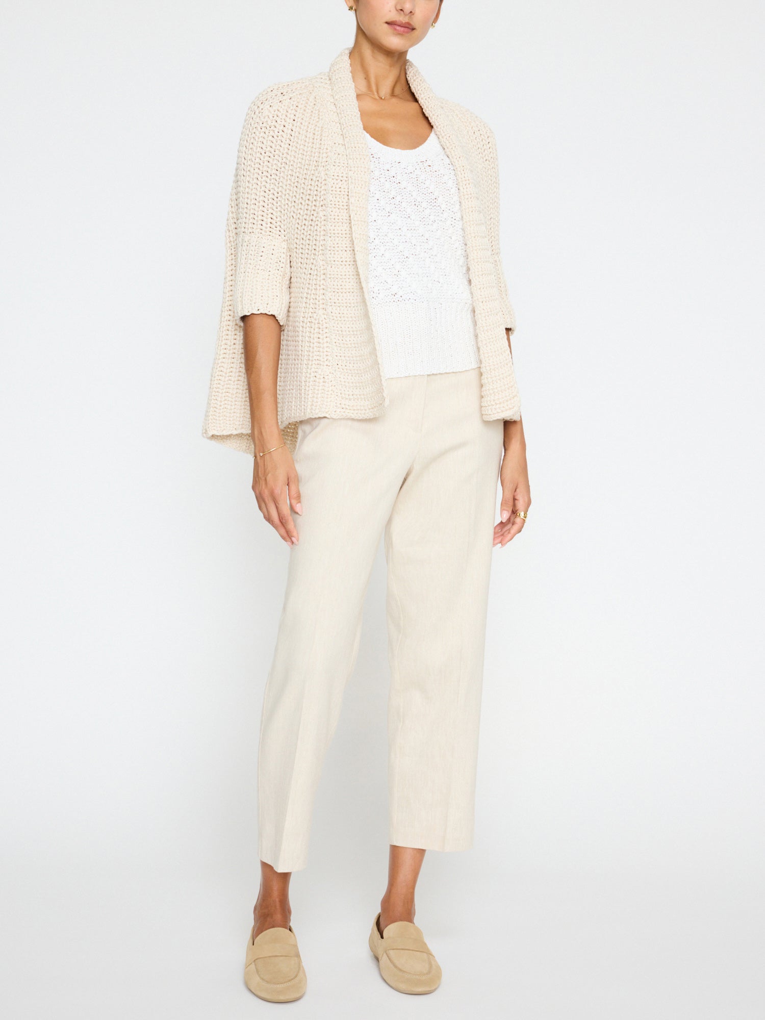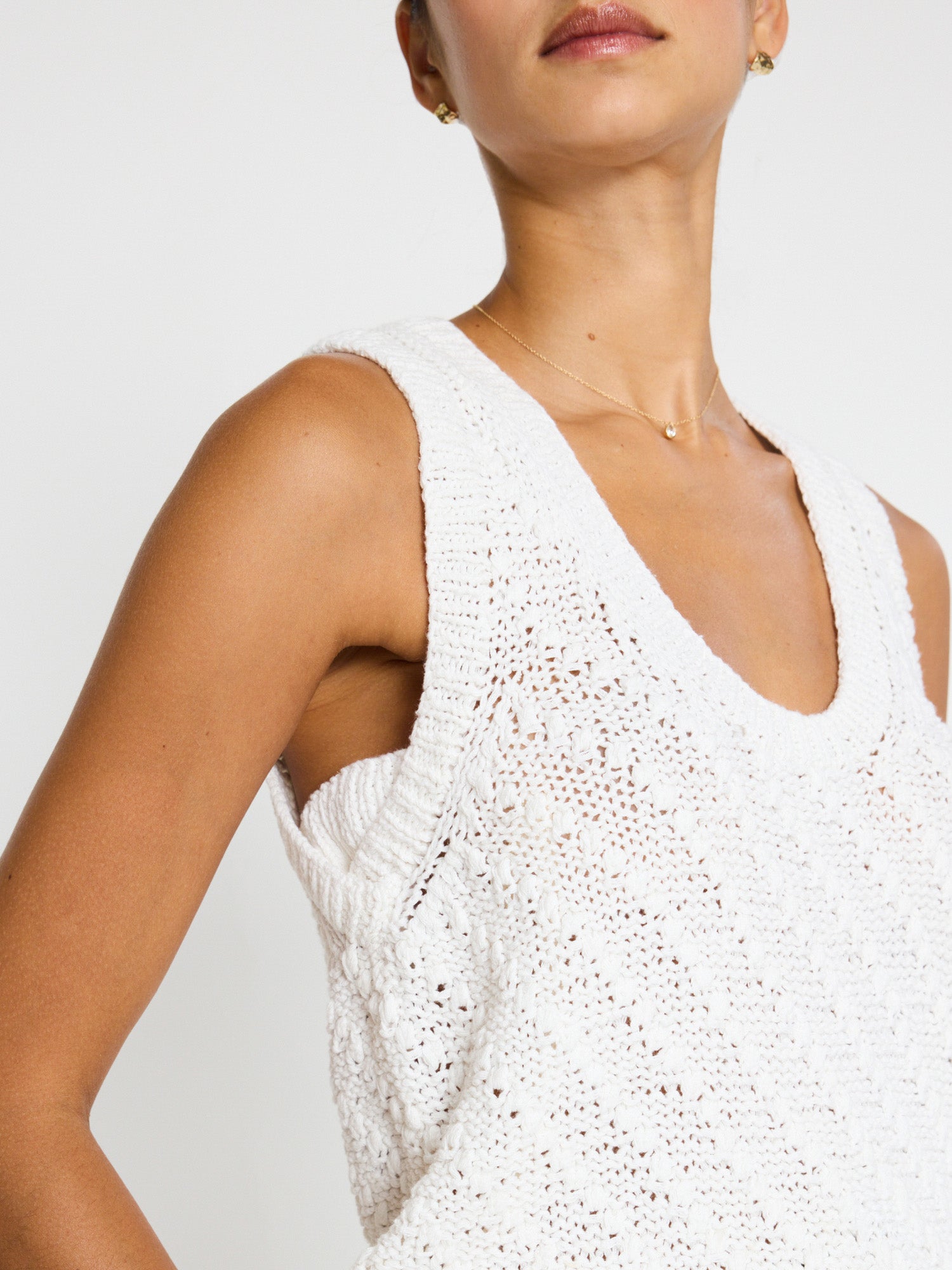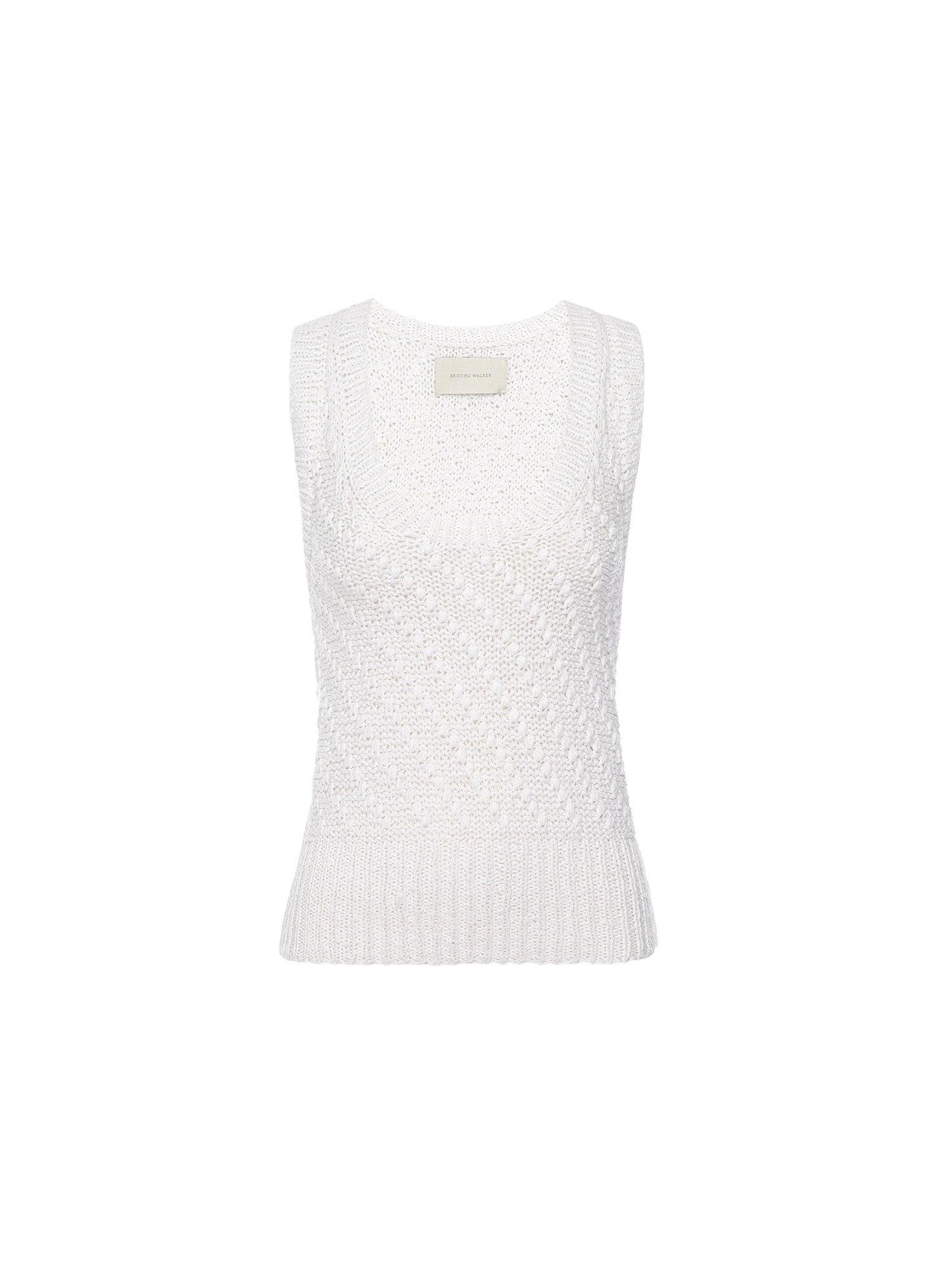 Sophisticated and fresh, our Eliot tank Top is handknit in a textural yarn that adds dimension. Its modern silhouette features a U-shape neckline and a slightly banded hem for a little structure. Finished with the details you love like ribbed trim and functional elements like bra-covering under arm gussets, Eliot is your new warm-weather go to.
