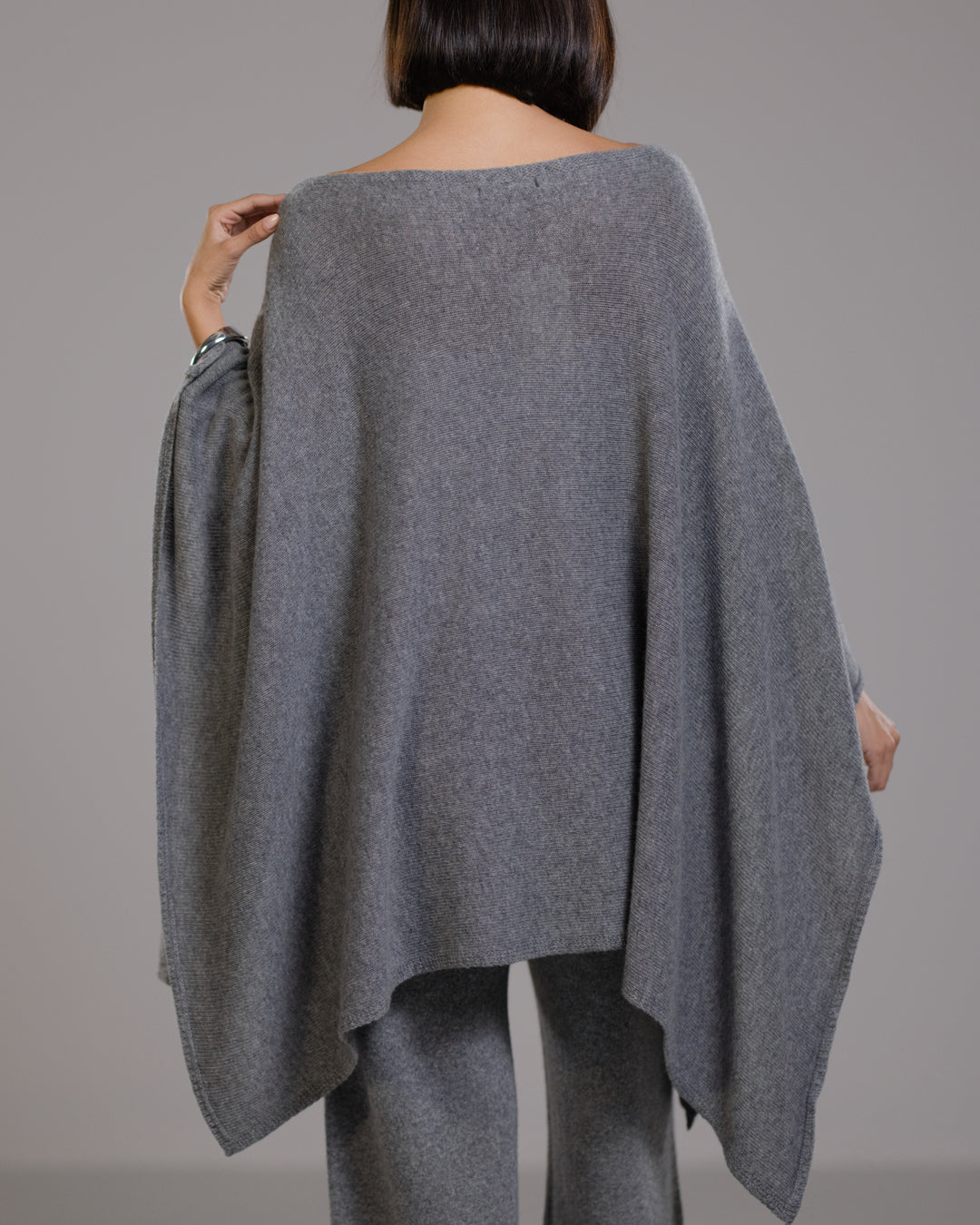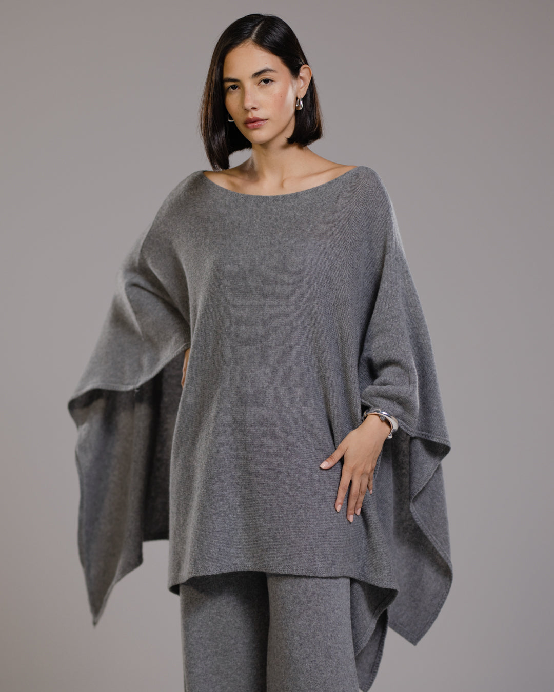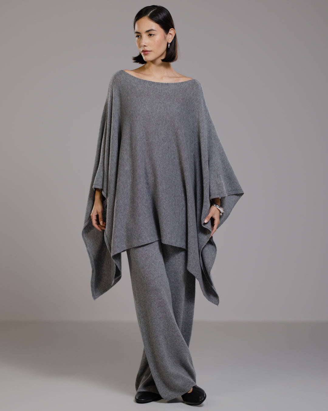 Elle Poncho | Grey Melange | Cashmere-Wool Blend