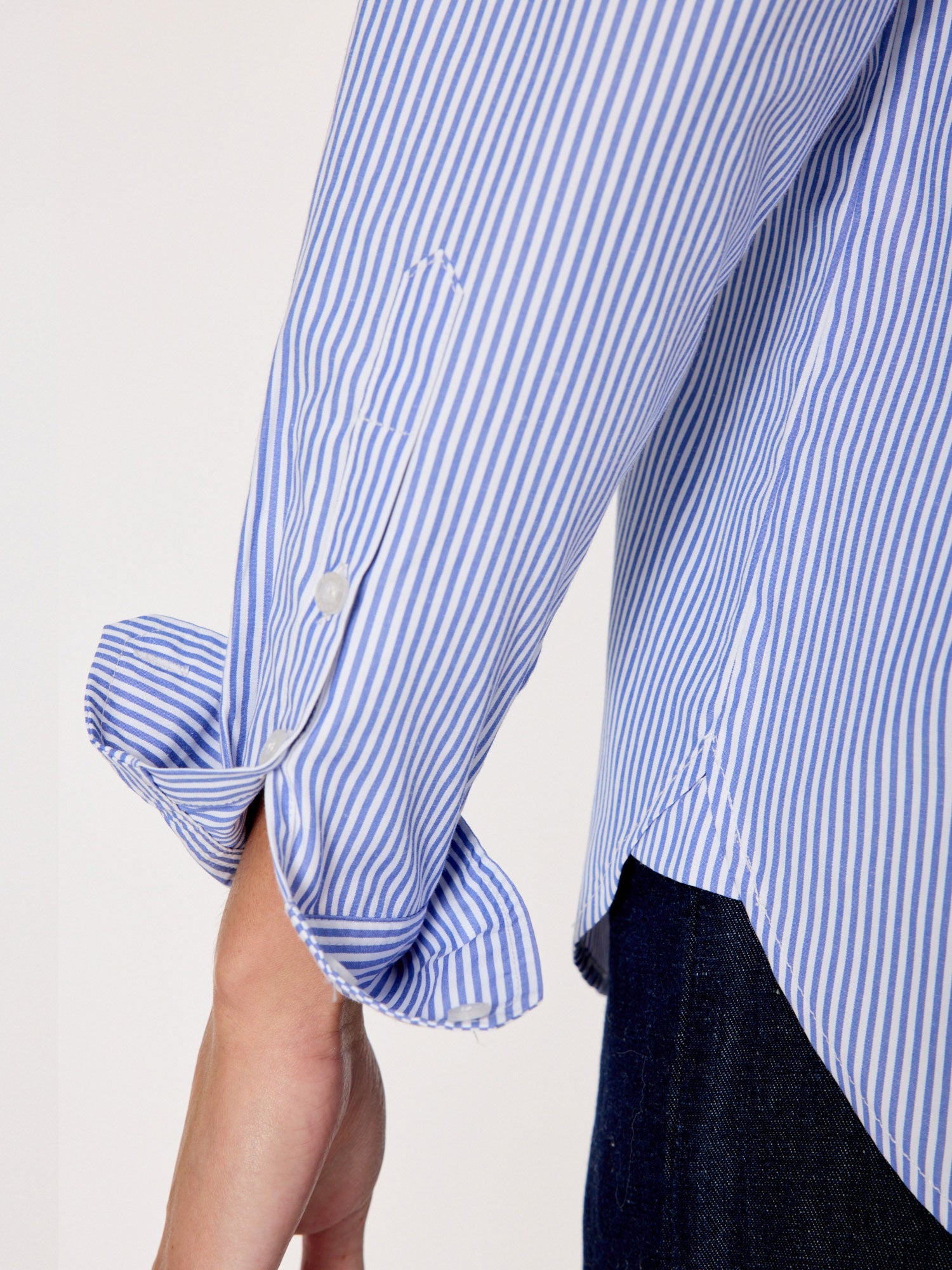 In a new blue and white stripe, our Everyday Shirt has that classic American vibe with a subtle Brochu Walker twist. In a relaxed fit, this staple is perfect for day or night. While it has a traditional collar and button placket with a locker loop at the back neck/yoke, this shirt is anything but basic.