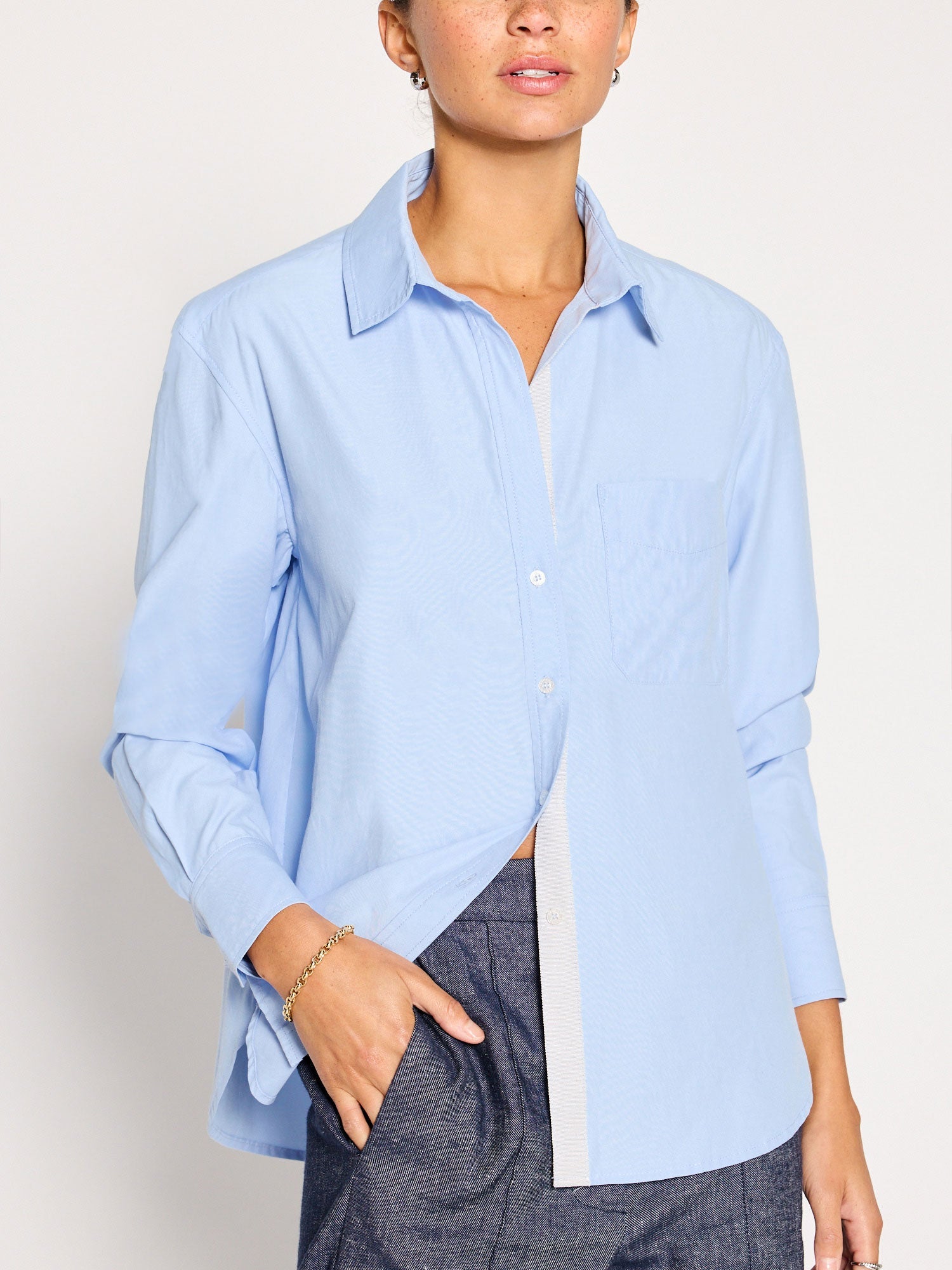 Our newest essential, our Everyday Shirt has that classic American vibe with a subtle Brochu Walker twist. In a relaxed fit, perfect for day or night, it features special details like subtle grosgrain trim on the cuffs and placket and a locker loop on the back neck/yoke. While it has a traditional collar and button placket, this shirt is anything but basic.