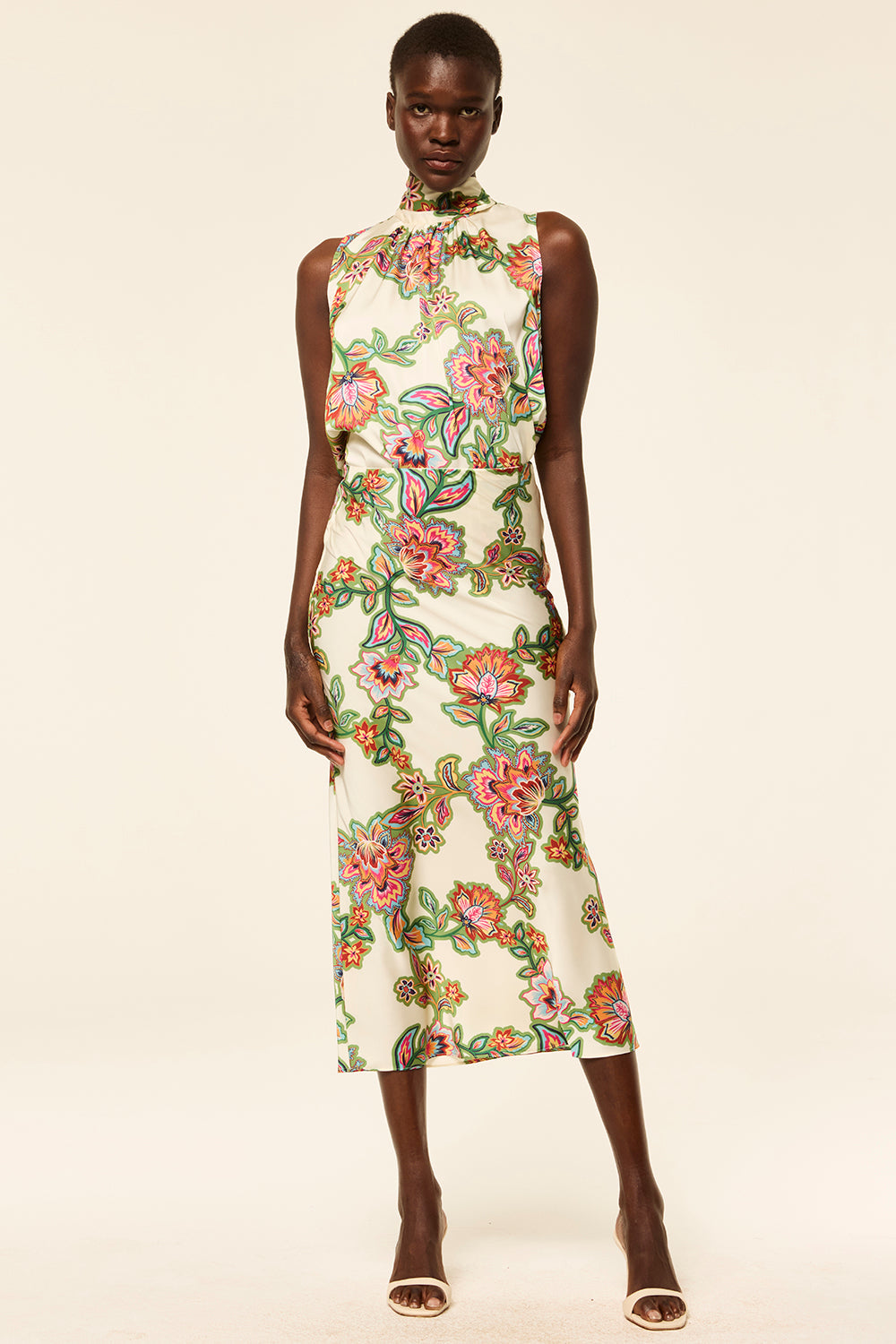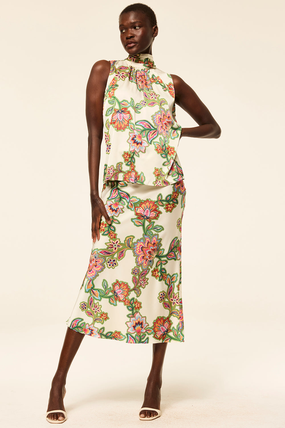 Our Fay skirt is a simple slip skirt that hits at the midi length and is cut from our Floral Lattice printed satin. A covered elastic waist is finished with a hidden side zip closure. Pair with everything from flats to heels for the perfect spring to summer style. Coordinate with our matching Luka top for a chic set.