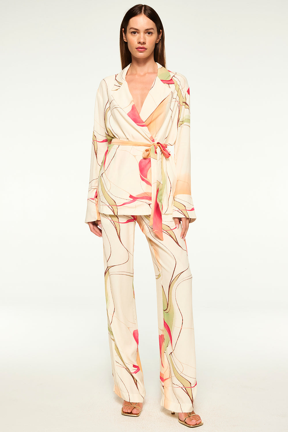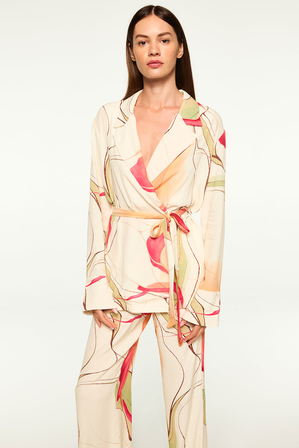Our Freja top is a chic and easy long sleeve wrap top cut from our Divine Marble crepe. A fold-over collar with v neckline and long sleeves with wide cuffs. Finished off with a self-tie belt. Pair with the coordinating Rita pant for the perfect set or with jeans for a more casual look.