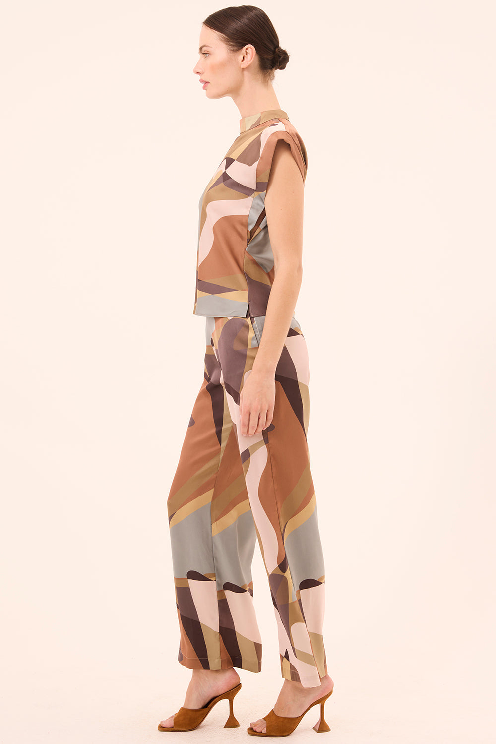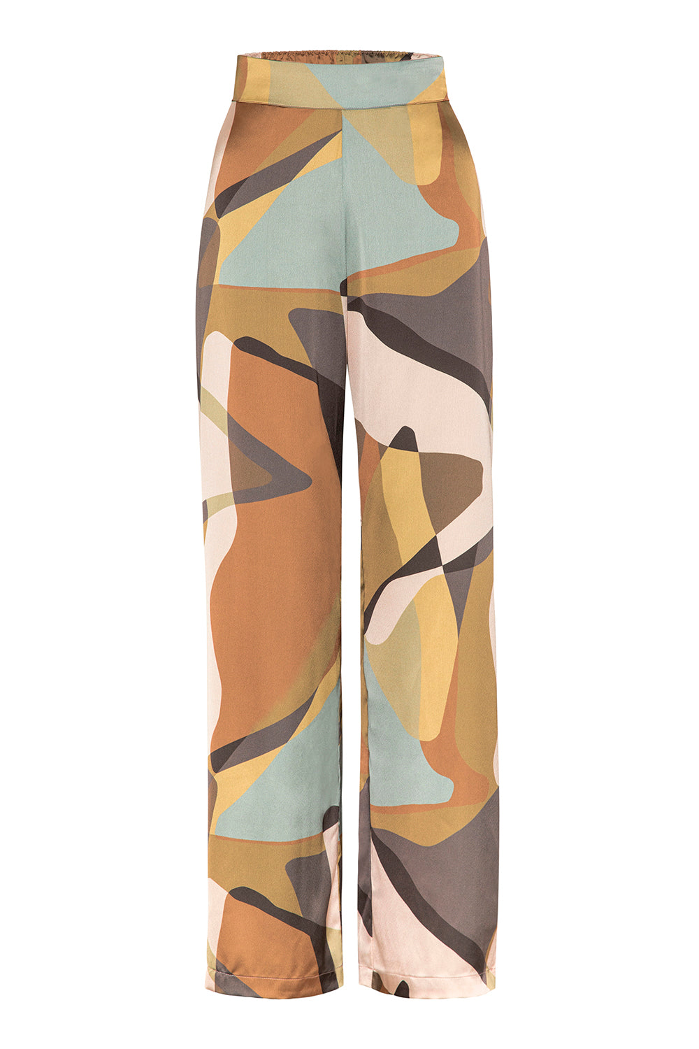 Izzie is a wide-leg pant cut from our Desert Abstract satin in chic neutral tones. Designed for ease and comfort, it features a pull-on style with a flat front waistband and elasticated back, plus side slit pockets. Pair with the coordinating Lucy top for a sophisticated head-to-toe look.