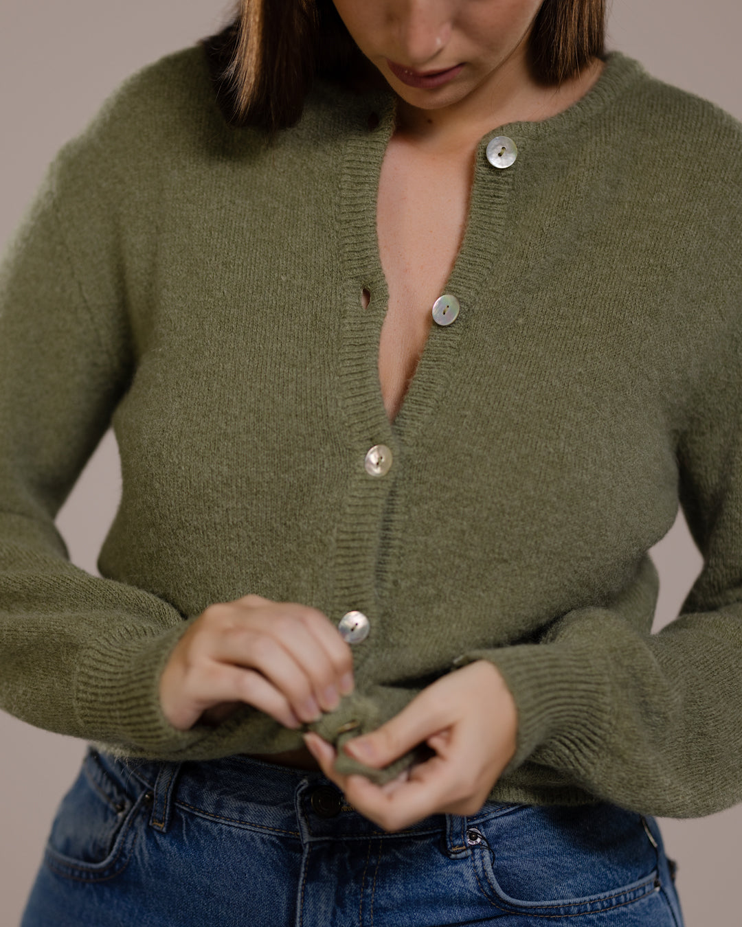 Kelsey Button Up Cardigan | Khaki | Alpaca-Wool Blend