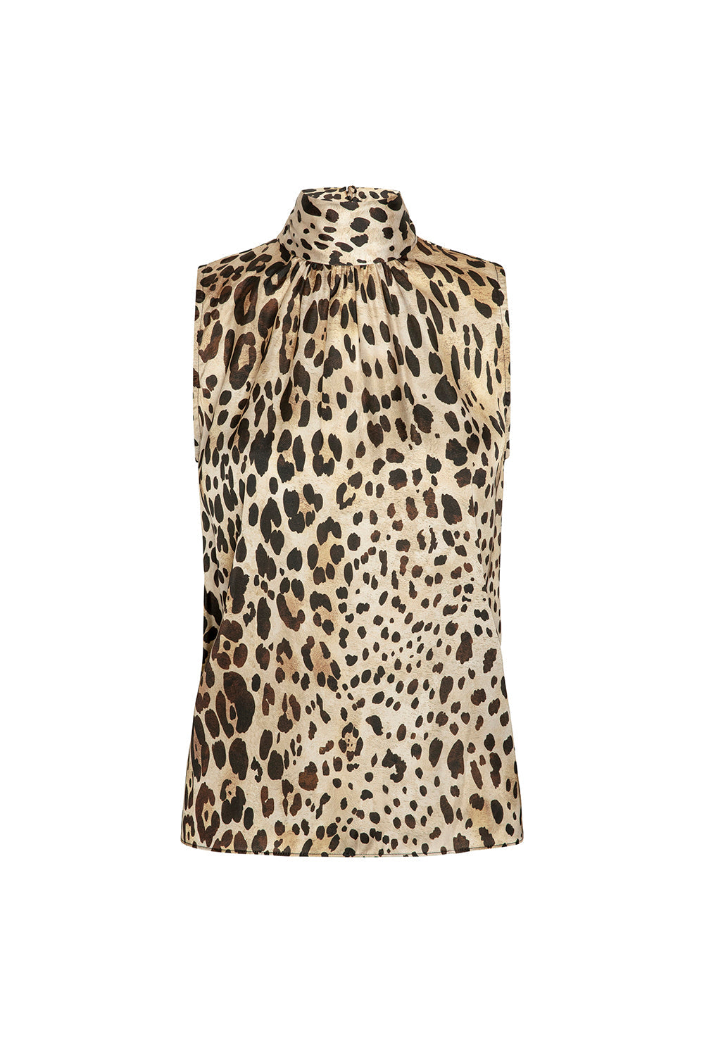 The sleeveless Luka top is an easy high-neck sleeveless silhouette cut from the perfect Leopard print satin. Featuring a self-tie at the neckline, this versatile style can be paired with everything from the coordinating Sierra skirt or Cher pant, to wide leg trousers under an oversized blazer.