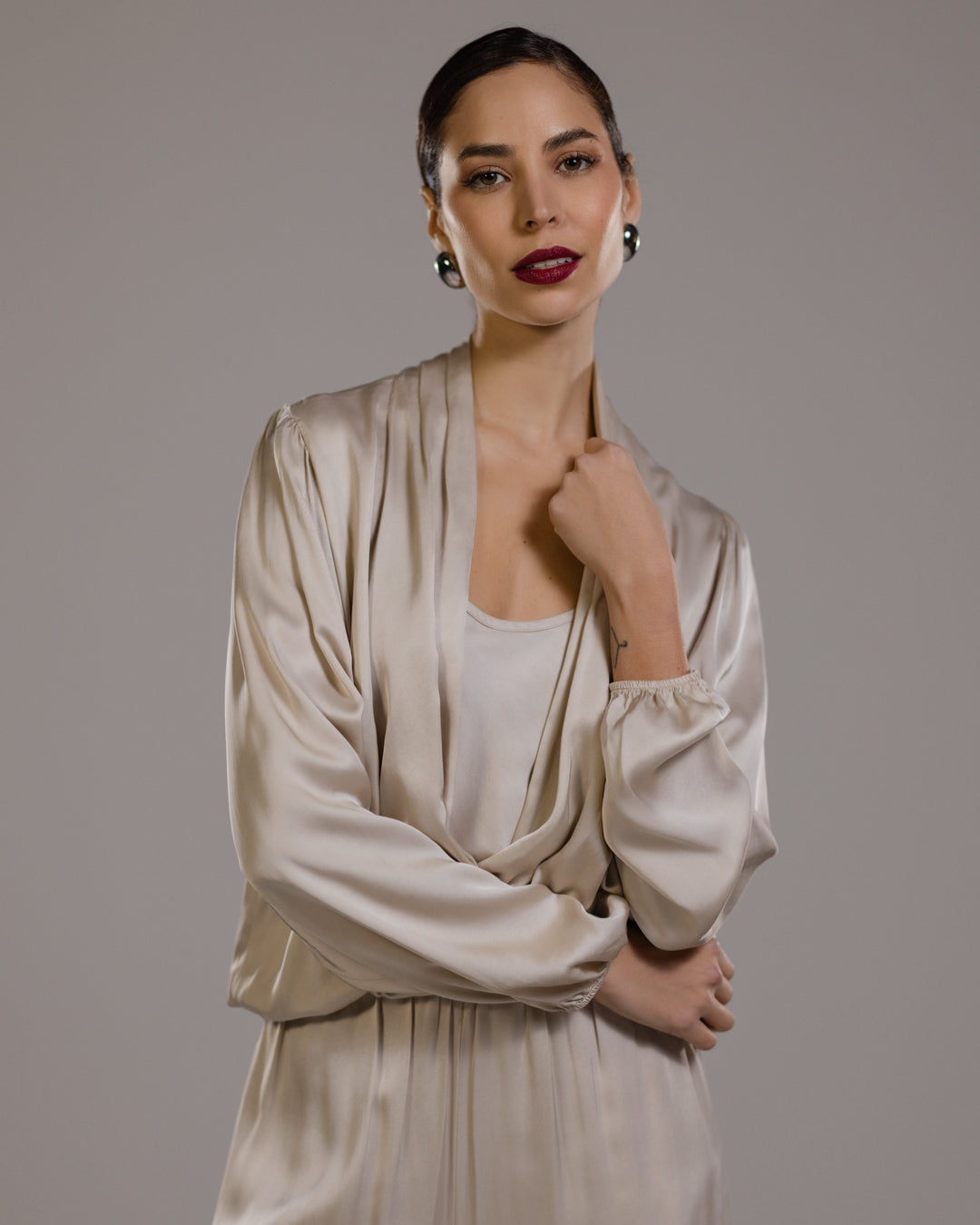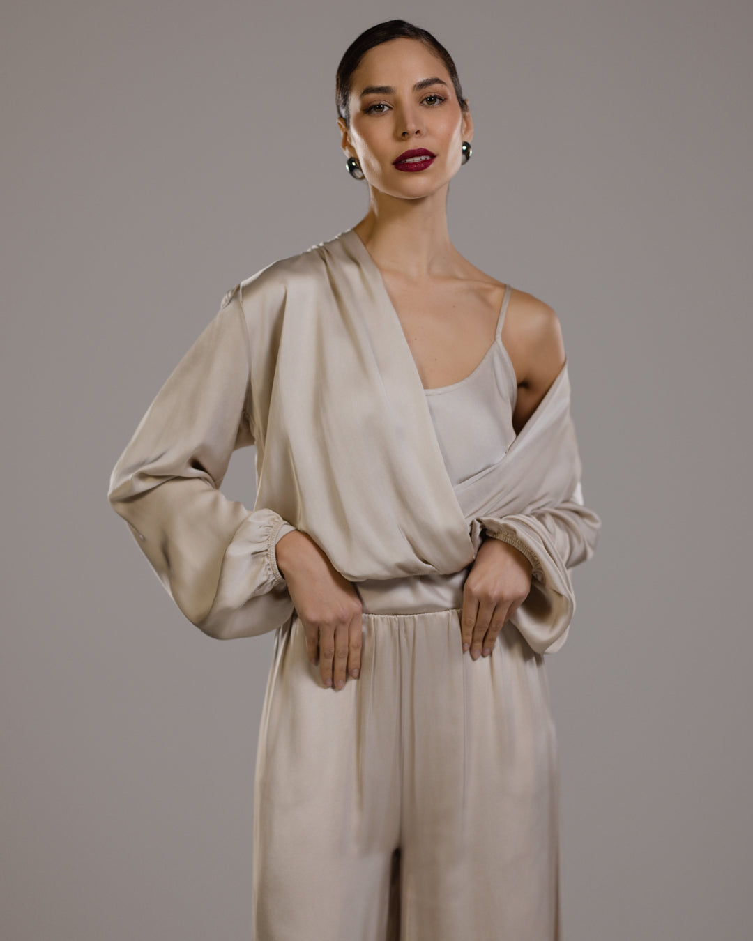 - Elastic hem allows this blouse to sit comfortably on waist.