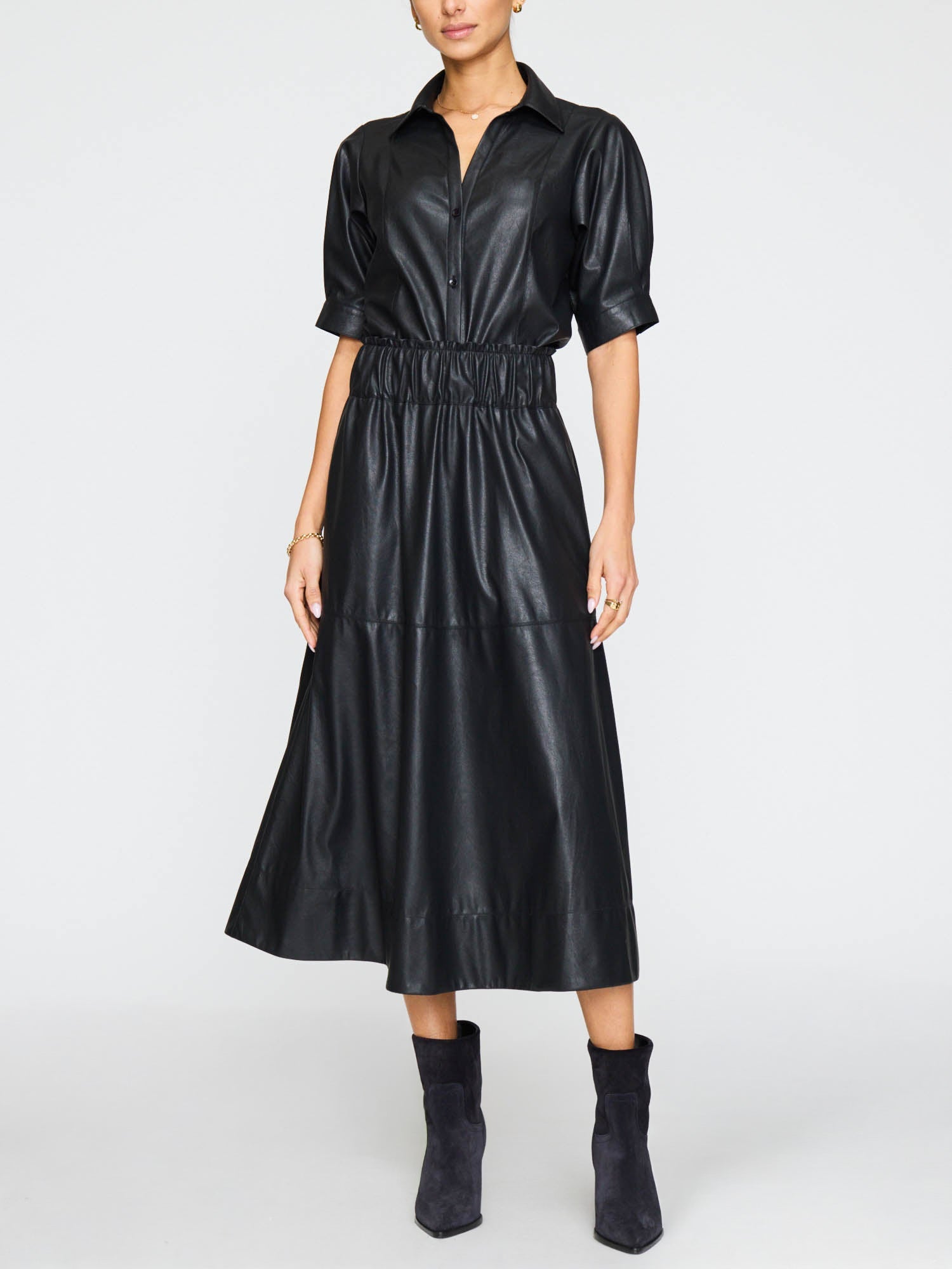 A sleek button-up crafted in vegan leather, the Max Shirt offers a sophisticated, feminine fit. Princess seams and functioning cuffs elevate this timeless style.
