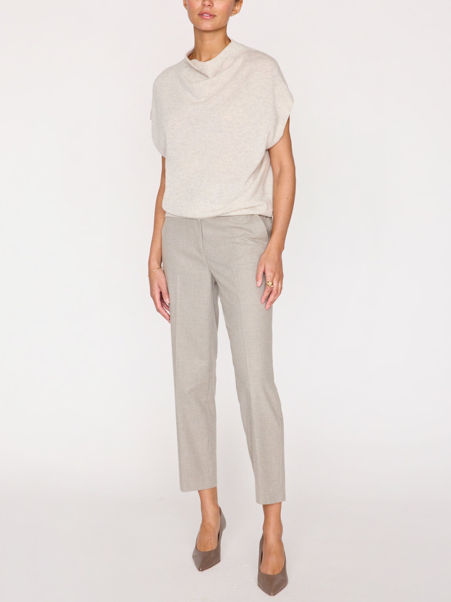 Our Morten Funnel Neck Top is quintessentially Brochu Walker. In a luxe 100% cashmere, this modern vest/top is designed to be worn on its own or layered as a vest. Featuring a draped funnel neck, rounded dropped shoulders and a relaxed shape, this sleeveless sweater is the epitome of effortlessness and versatility. Part of our ‘Kinder To The Environment’ collection, it is made RWS-certified, traceable yarn which means it adheres to stringent animal welfare standards.