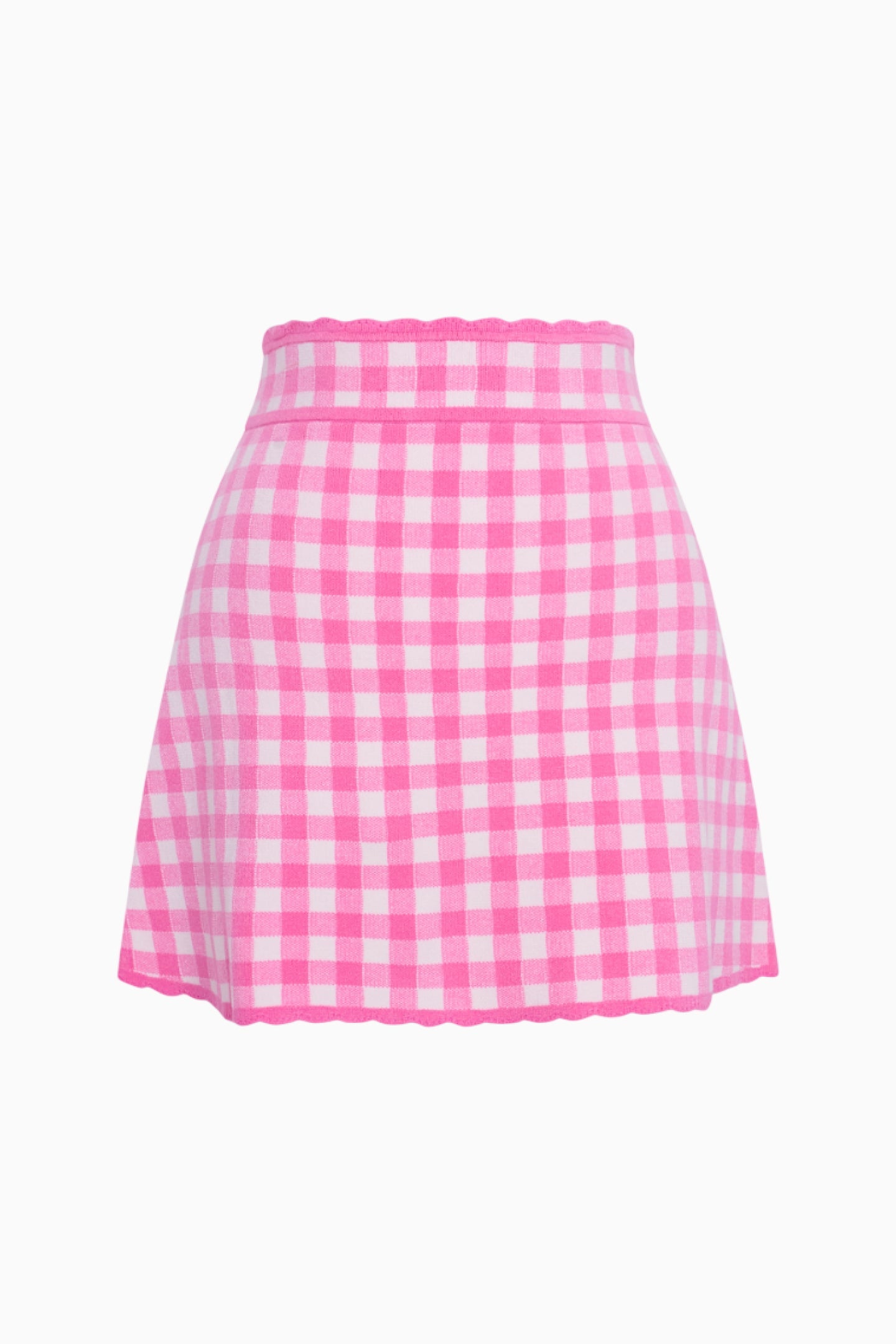 Introducing the Muna Skirt. This flirty scallop skirt arrives in our best-selling stretch yarn with a delicate pointelle throughout. With a slightly high-waisted, slim fit, the skirt features scallop details on the waist band for a playful look. With a slight stretch, this piece is easy to pull on. Pair with the Jessyn Tank or Bridgette Cardigan for a full set.