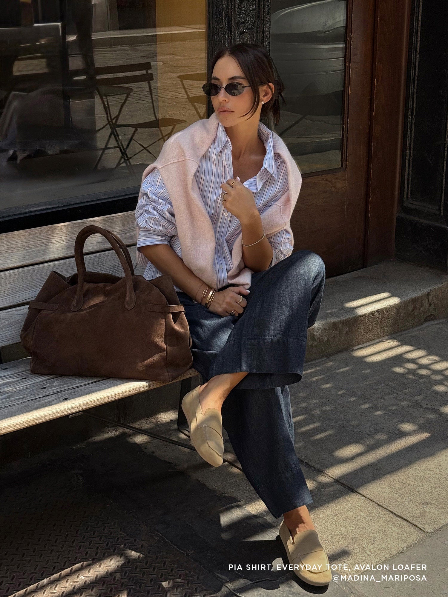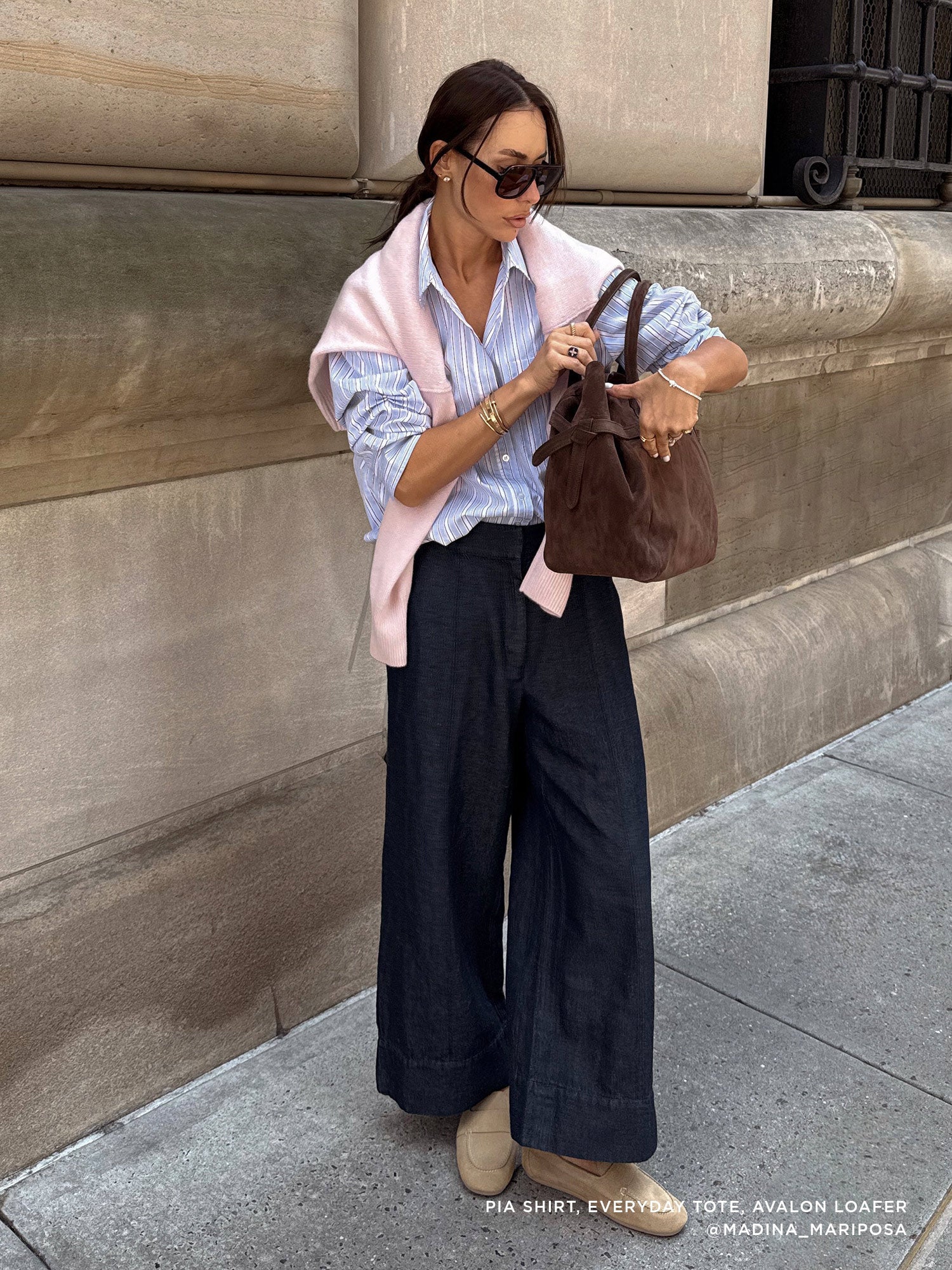 The newest addition to our essential Shirt Collection, our Pia Shirt has the same silhouette as our bestselling Everyday Shirt, now featuring a pre-styled scrunched sleeve giving it a more sensual sensibility than our most-loved cotton shirts. In a relaxed fit, that makes it effortless, this button front shirt features special details like subtle grosgrain trim on the placket and a locker loop on the back yoke.