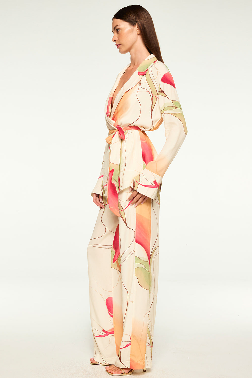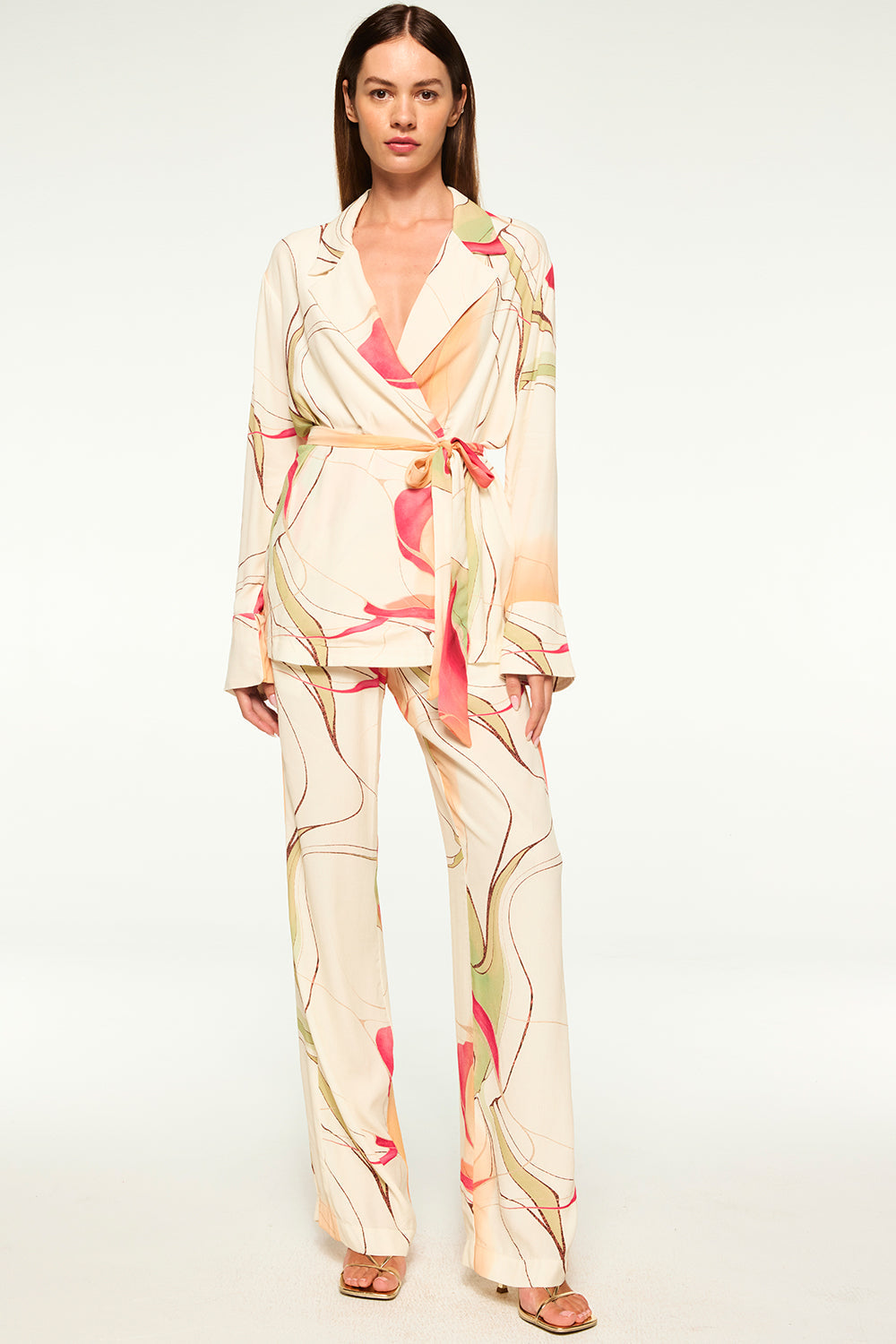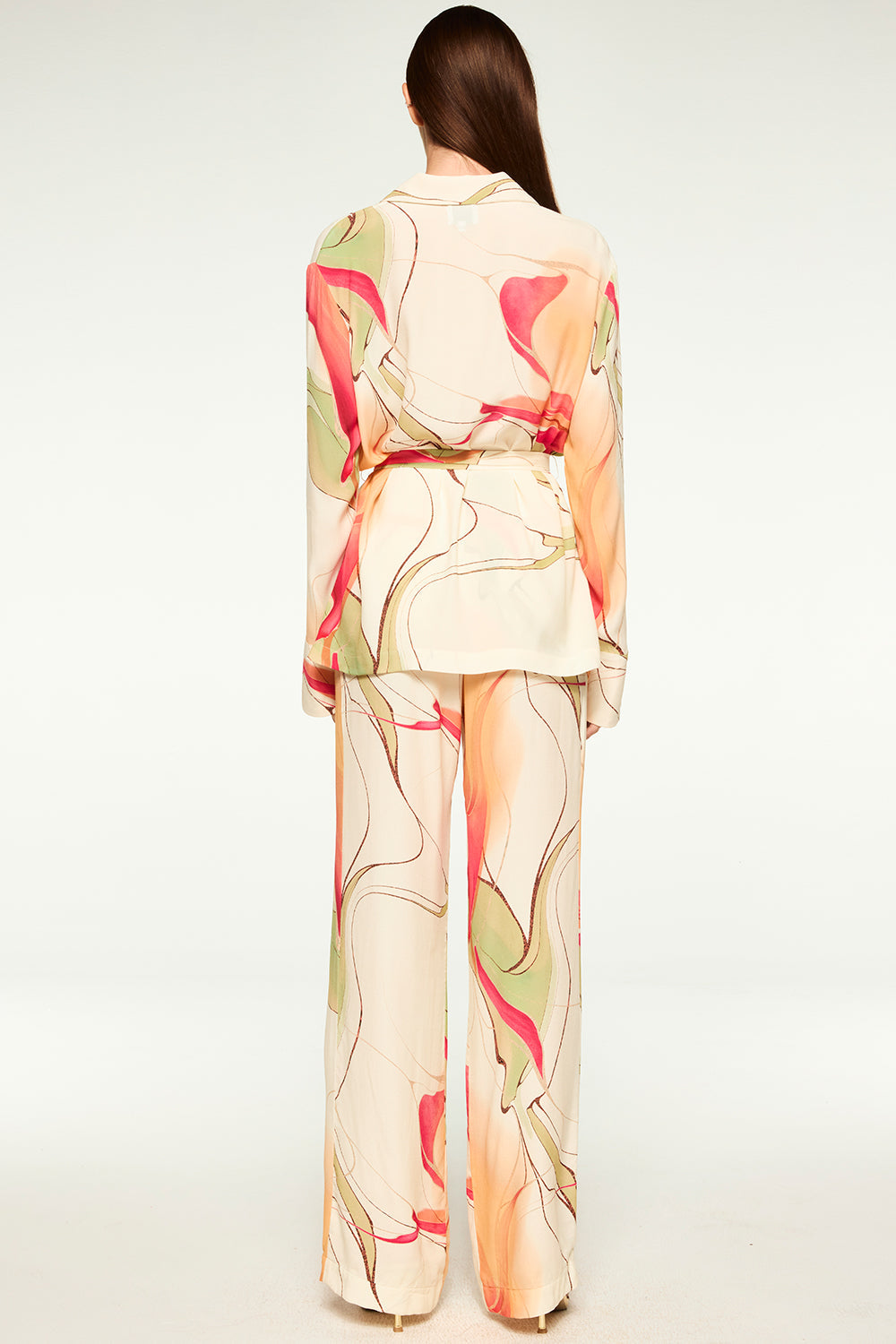 Our high-rise Rita pant is cut from our Divine Marble printed crepe. Featuring straight legs and side slant pockets. A hidden zip front and extended hook-and-bar closure. Pair with the coordinating Freja top for a head to toe Resort-ready set.