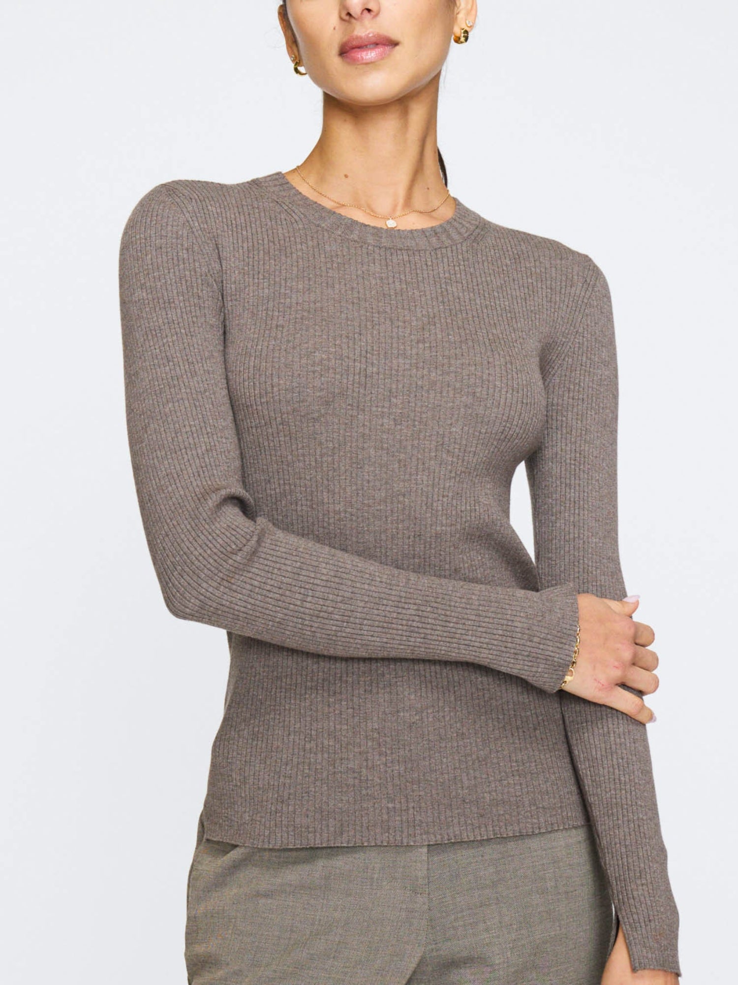 Our Tamsin Skinny Rib Top is designed to be the ultimate layering piece. Designed in a skinny rib that adds a texture and a fitted body that is still comfortable and moves with you. This long sleeve, crew neck style is beautifully finished with our signature slit detail at the cuff for a touch of femininity.