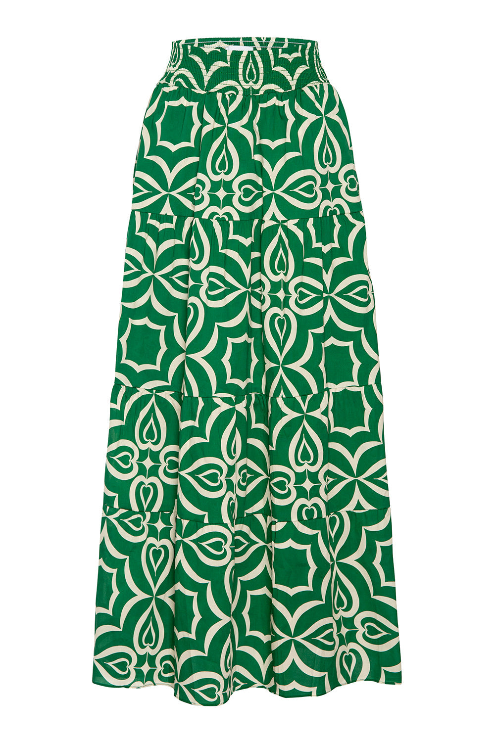 The Yelena skirt is a timeless maxi cut from cotton in our vibrant Green Mosaic Tile print. Designed with a smocked elastic waistband and side slit pockets, it’s an easy-to-style piece that pairs perfectly with your favorite tee or the coordinating Cyra top for a complete set that transitions effortlessly from spring to summer.